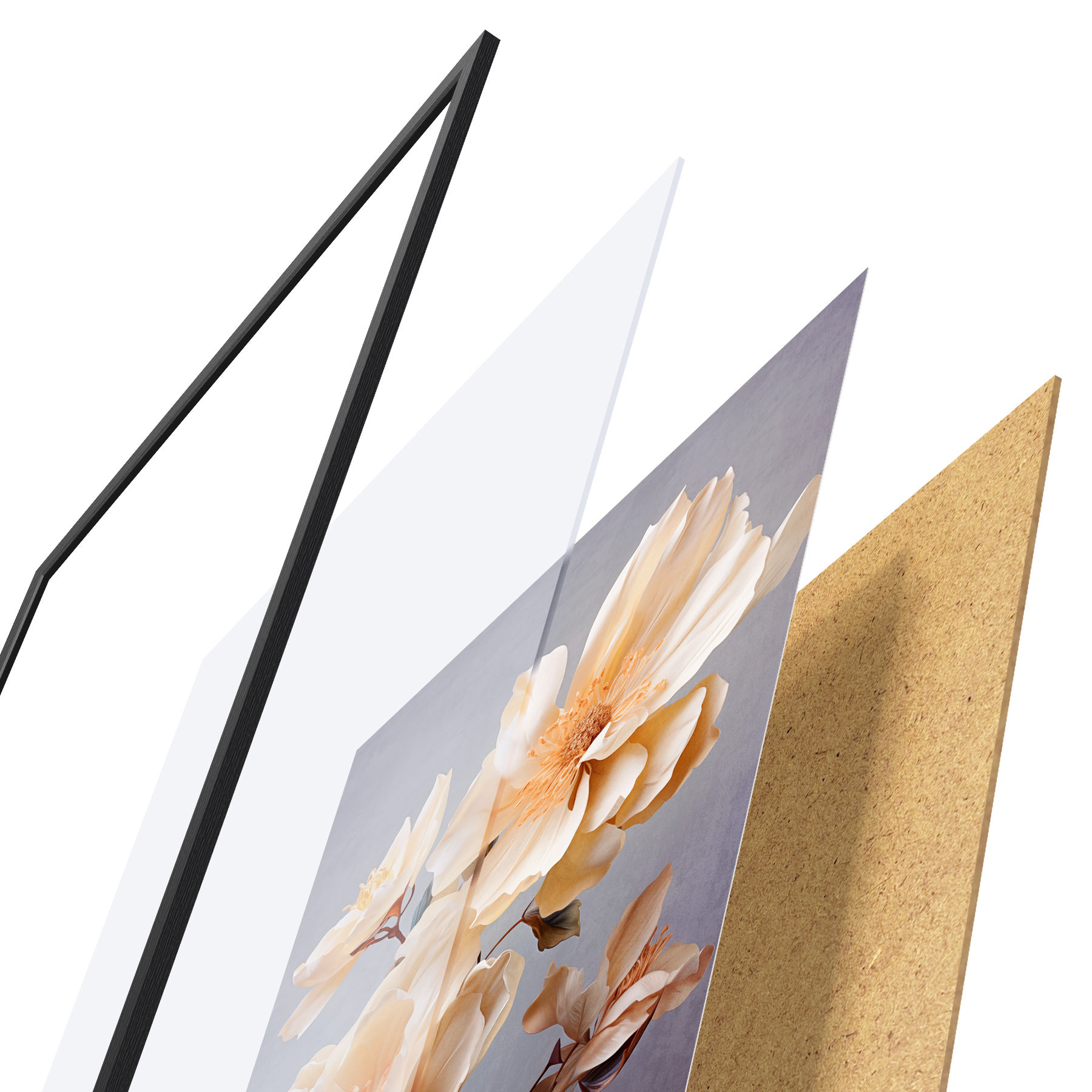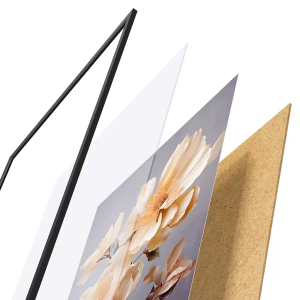 Plakāts sastāv no rāmja, pleksstikla, iespiestā attēla un skaidu plātnes pamatnes. Plakātu var uzreiz piekarināt pie sienas, pateicoties aizmugurē esošajiem stiprinājumiem.