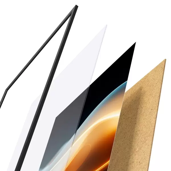 Plakāts sastāv no rāmja, pleksstikla, iespiestā attēla un skaidu plātnes pamatnes. Plakātu var uzreiz piekarināt pie sienas, pateicoties aizmugurē esošajiem stiprinājumiem.