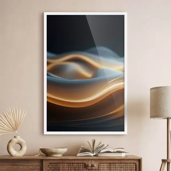 SākumlapaPlakātu katalogsPlakāti dabaPlakāts Abstraktas plūstošas formas ar oranžām līnijām, gludas līknes un līnijas, dinamiska kompozīcija, tumšs fons Nr f45184
