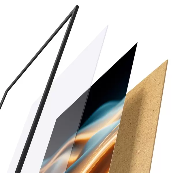 Plakāts sastāv no rāmja, pleksstikla, iespiestā attēla un skaidu plātnes pamatnes. Plakātu var uzreiz piekarināt pie sienas, pateicoties aizmugurē esošajiem stiprinājumiem.
