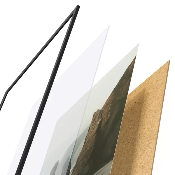 Plakāts sastāv no rāmja, pleksstikla, iespiestā attēla un skaidu plātnes pamatnes. Plakātu var uzreiz piekarināt pie sienas, pateicoties aizmugurē esošajiem stiprinājumiem.