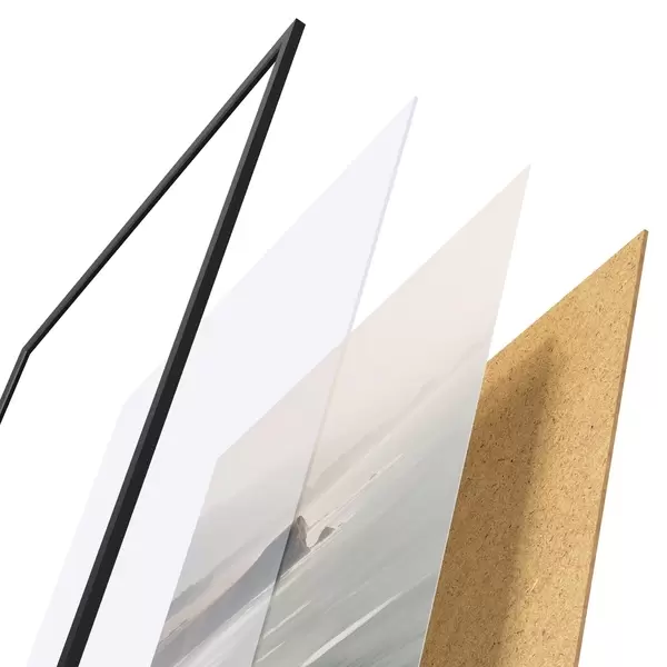 Plakāts sastāv no rāmja, pleksstikla, iespiestā attēla un skaidu plātnes pamatnes. Plakātu var uzreiz piekarināt pie sienas, pateicoties aizmugurē esošajiem stiprinājumiem.