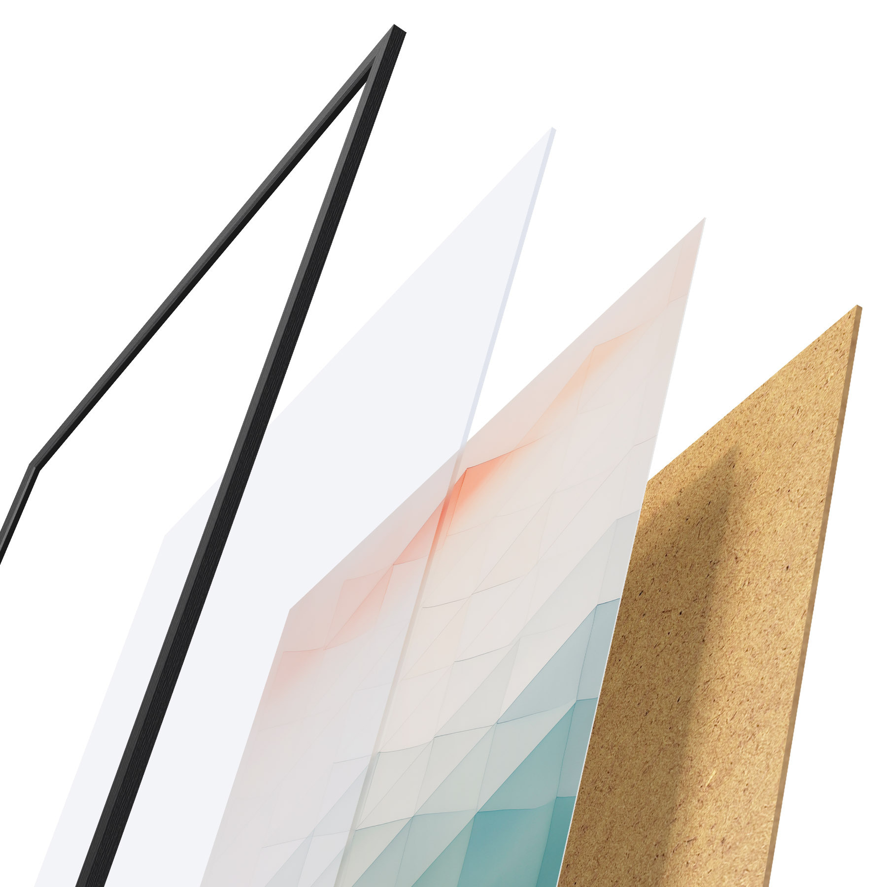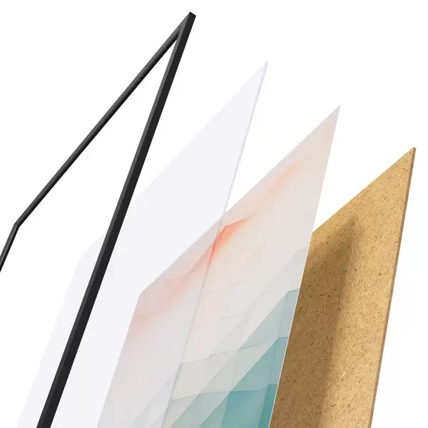 Plakāts sastāv no rāmja, pleksstikla, iespiestā attēla un skaidu plātnes pamatnes. Plakātu var uzreiz piekarināt pie sienas, pateicoties aizmugurē esošajiem stiprinājumiem.