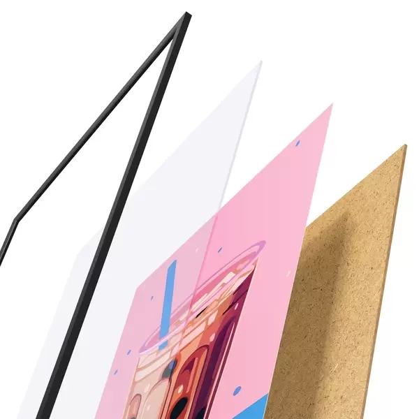 Plakāts sastāv no rāmja, pleksstikla, iespiestā attēla un skaidu plātnes pamatnes. Plakātu var uzreiz piekarināt pie sienas, pateicoties aizmugurē esošajiem stiprinājumiem.