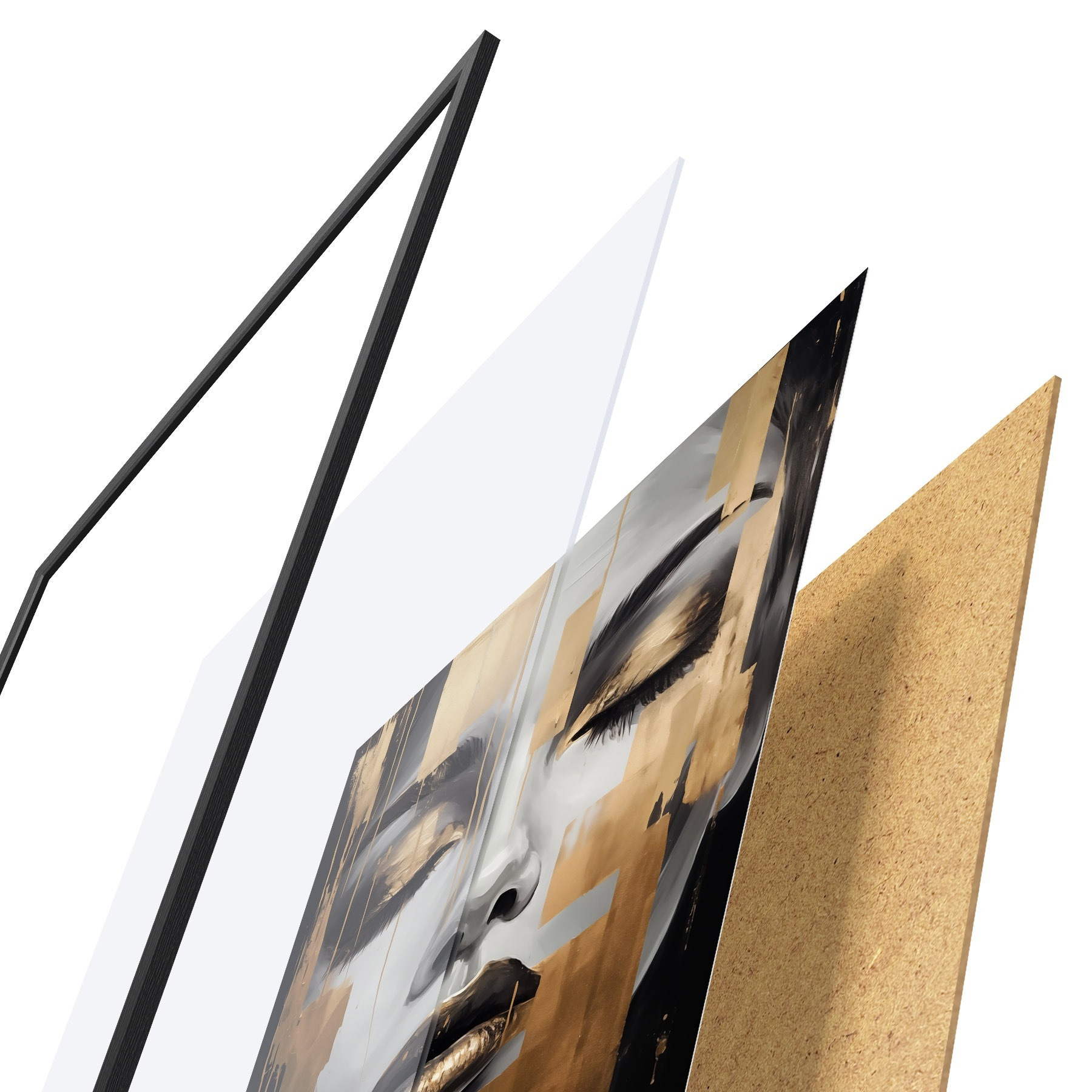 Plakāts sastāv no rāmja, pleksstikla, iespiestā attēla un skaidu plātnes pamatnes. Plakātu var uzreiz piekarināt pie sienas, pateicoties aizmugurē esošajiem stiprinājumiem.