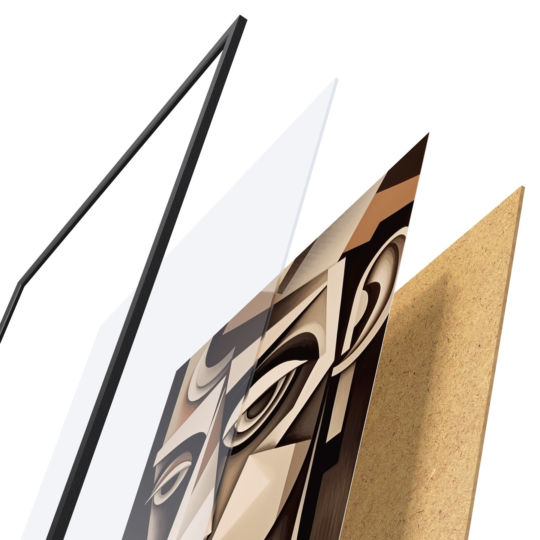 Plakāts sastāv no rāmja, pleksstikla, iespiestā attēla un skaidu plātnes pamatnes. Plakātu var uzreiz piekarināt pie sienas, pateicoties aizmugurē esošajiem stiprinājumiem.