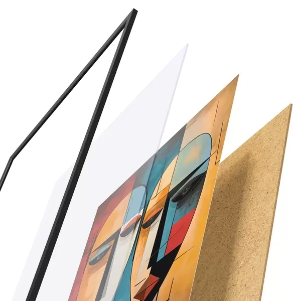 Plakāts sastāv no rāmja, pleksstikla, iespiestā attēla un skaidu plātnes pamatnes. Plakātu var uzreiz piekarināt pie sienas, pateicoties aizmugurē esošajiem stiprinājumiem.