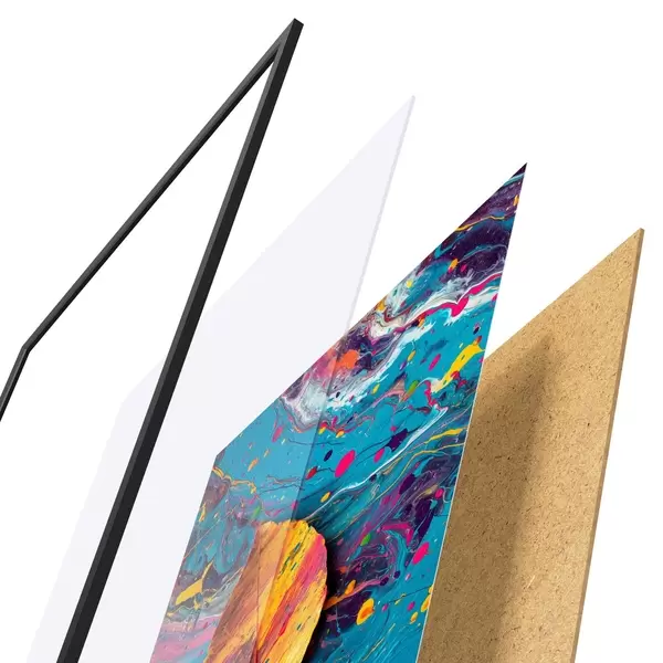 Plakāts sastāv no rāmja, pleksstikla, iespiestā attēla un skaidu plātnes pamatnes. Plakātu var uzreiz piekarināt pie sienas, pateicoties aizmugurē esošajiem stiprinājumiem.