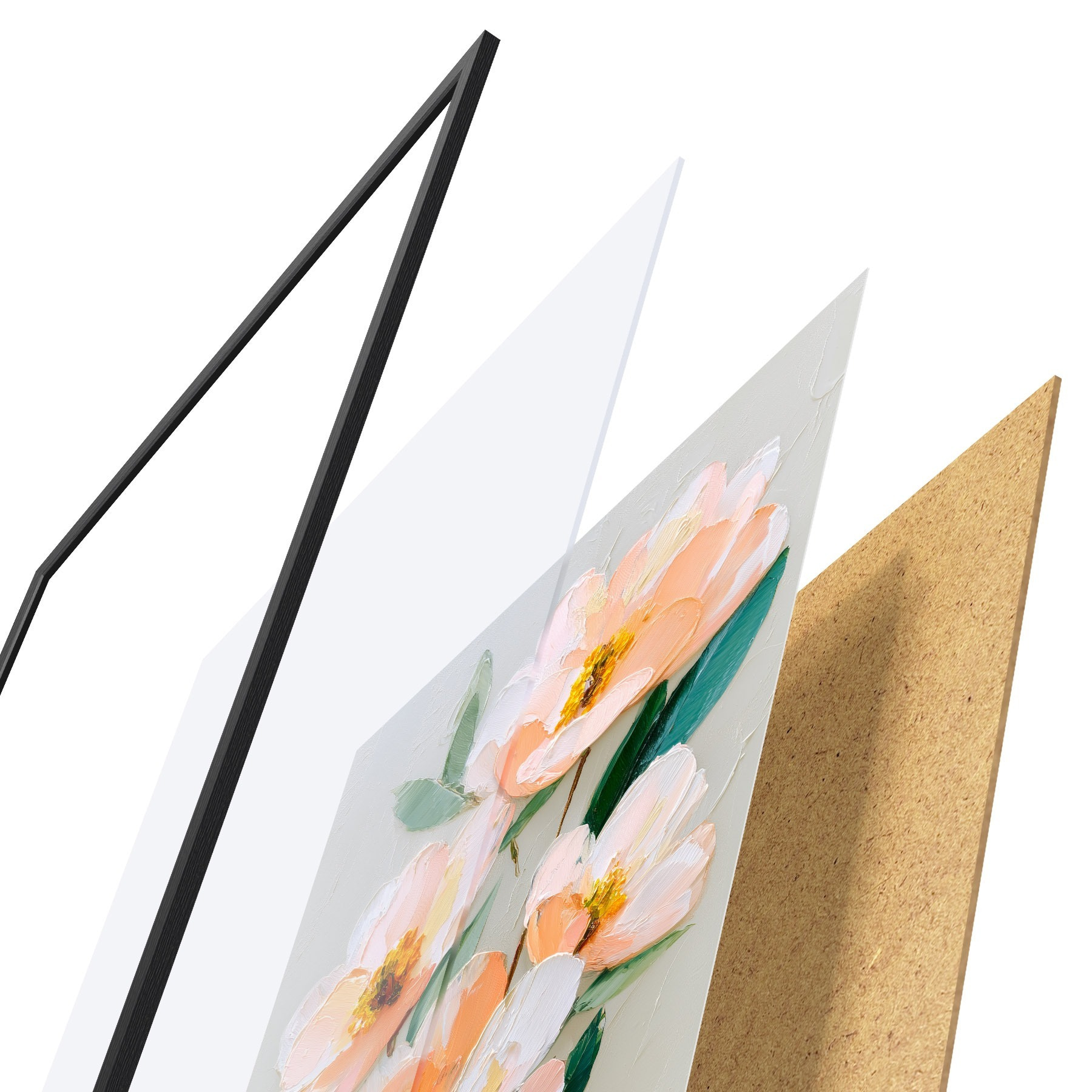 Plakāts sastāv no rāmja, pleksstikla, iespiestā attēla un skaidu plātnes pamatnes. Plakātu var uzreiz piekarināt pie sienas, pateicoties aizmugurē esošajiem stiprinājumiem.