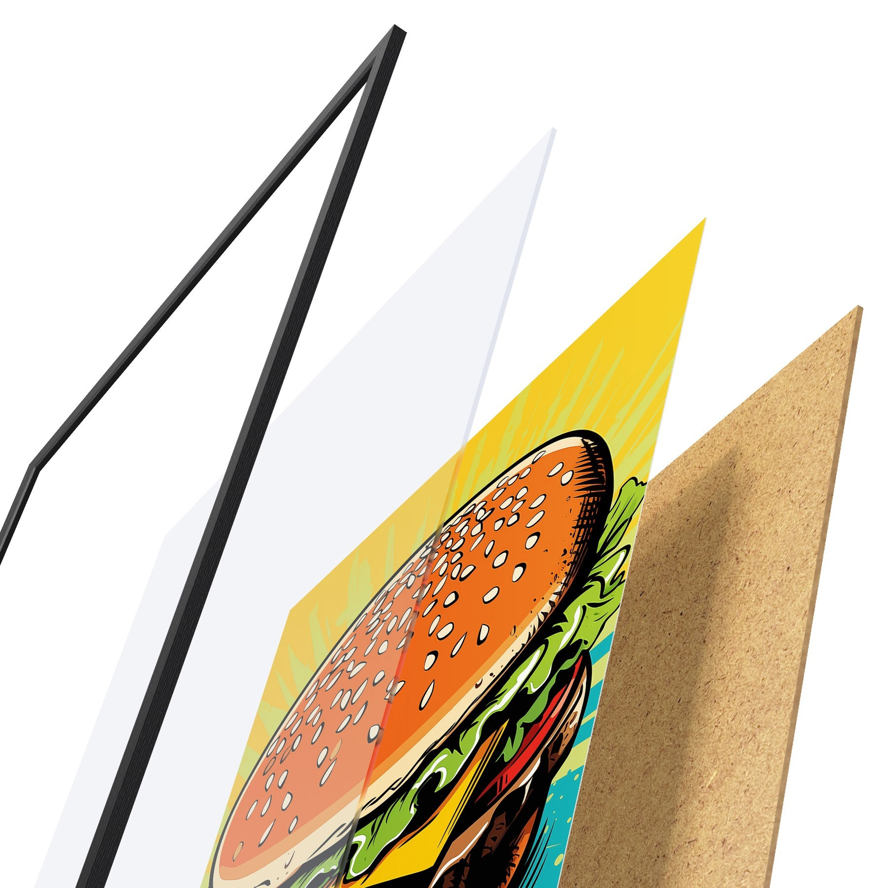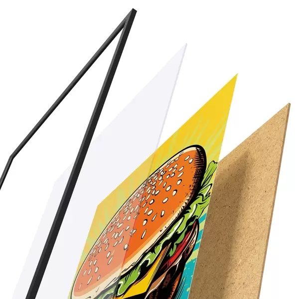 Plakāts sastāv no rāmja, pleksstikla, iespiestā attēla un skaidu plātnes pamatnes. Plakātu var uzreiz piekarināt pie sienas, pateicoties aizmugurē esošajiem stiprinājumiem.