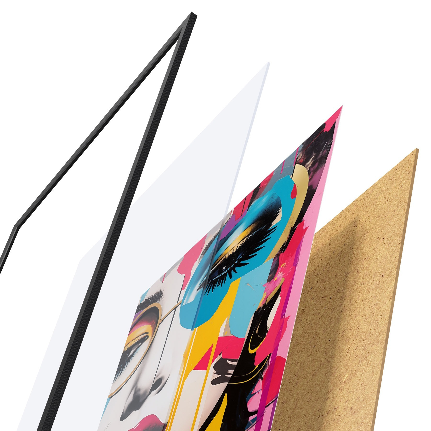 Plakāts sastāv no rāmja, pleksstikla, iespiestā attēla un skaidu plātnes pamatnes. Plakātu var uzreiz piekarināt pie sienas, pateicoties aizmugurē esošajiem stiprinājumiem.