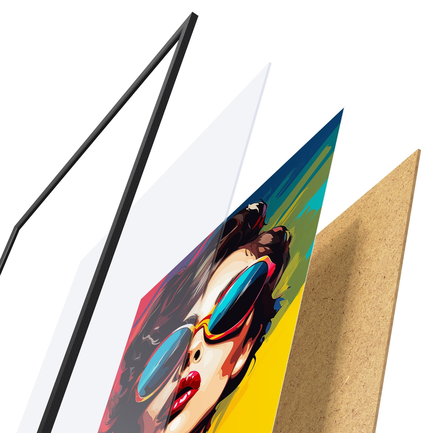 Plakāts sastāv no rāmja, pleksstikla, iespiestā attēla un skaidu plātnes pamatnes. Plakātu var uzreiz piekarināt pie sienas, pateicoties aizmugurē esošajiem stiprinājumiem.