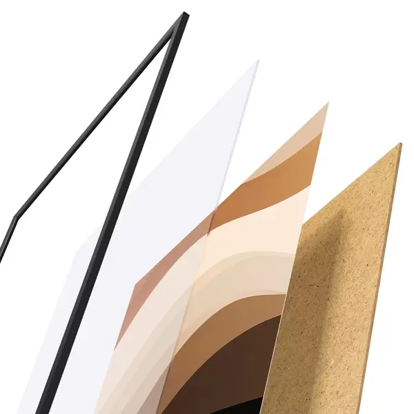 Plakāts sastāv no rāmja, pleksstikla, iespiestā attēla un skaidu plātnes pamatnes. Plakātu var uzreiz piekarināt pie sienas, pateicoties aizmugurē esošajiem stiprinājumiem.