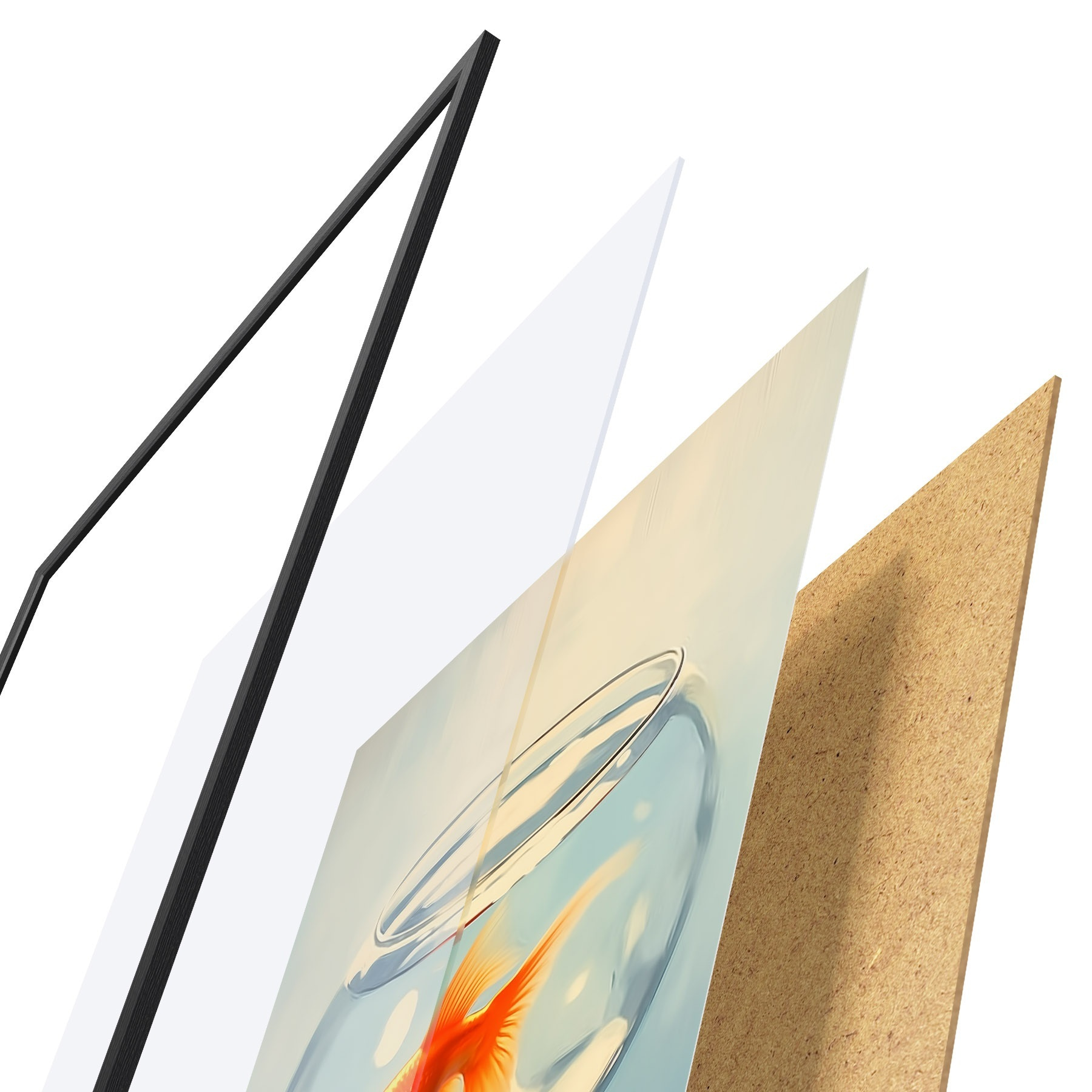 Plakāts sastāv no rāmja, pleksstikla, iespiestā attēla un skaidu plātnes pamatnes. Plakātu var uzreiz piekarināt pie sienas, pateicoties aizmugurē esošajiem stiprinājumiem.