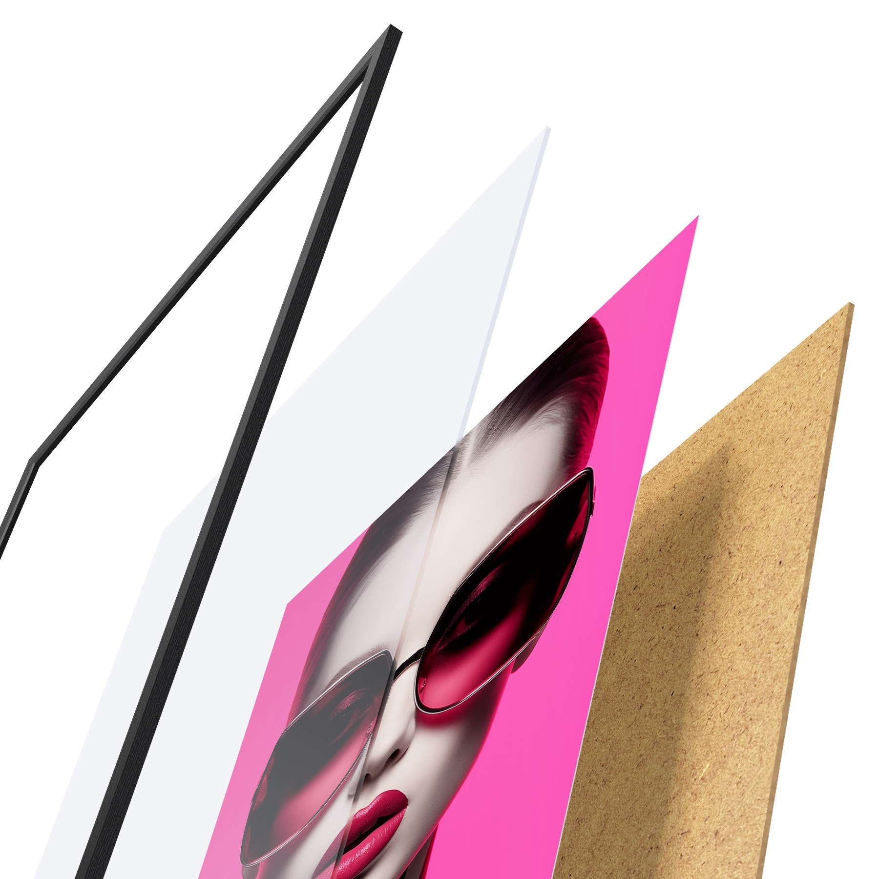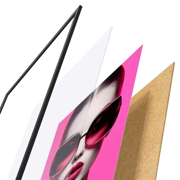 Plakāts sastāv no rāmja, pleksstikla, iespiestā attēla un skaidu plātnes pamatnes. Plakātu var uzreiz piekarināt pie sienas, pateicoties aizmugurē esošajiem stiprinājumiem.