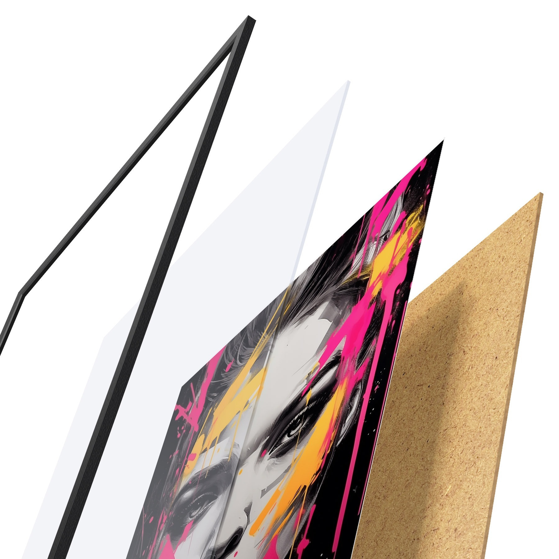 Plakāts sastāv no rāmja, pleksstikla, iespiestā attēla un skaidu plātnes pamatnes. Plakātu var uzreiz piekarināt pie sienas, pateicoties aizmugurē esošajiem stiprinājumiem.
