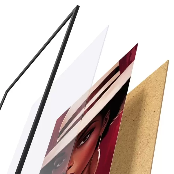 Plakāts sastāv no rāmja, pleksstikla, iespiestā attēla un skaidu plātnes pamatnes. Plakātu var uzreiz piekarināt pie sienas, pateicoties aizmugurē esošajiem stiprinājumiem.