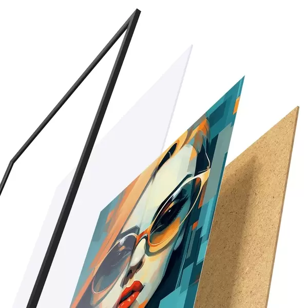 Plakāts sastāv no rāmja, pleksstikla, iespiestā attēla un skaidu plātnes pamatnes. Plakātu var uzreiz piekarināt pie sienas, pateicoties aizmugurē esošajiem stiprinājumiem.