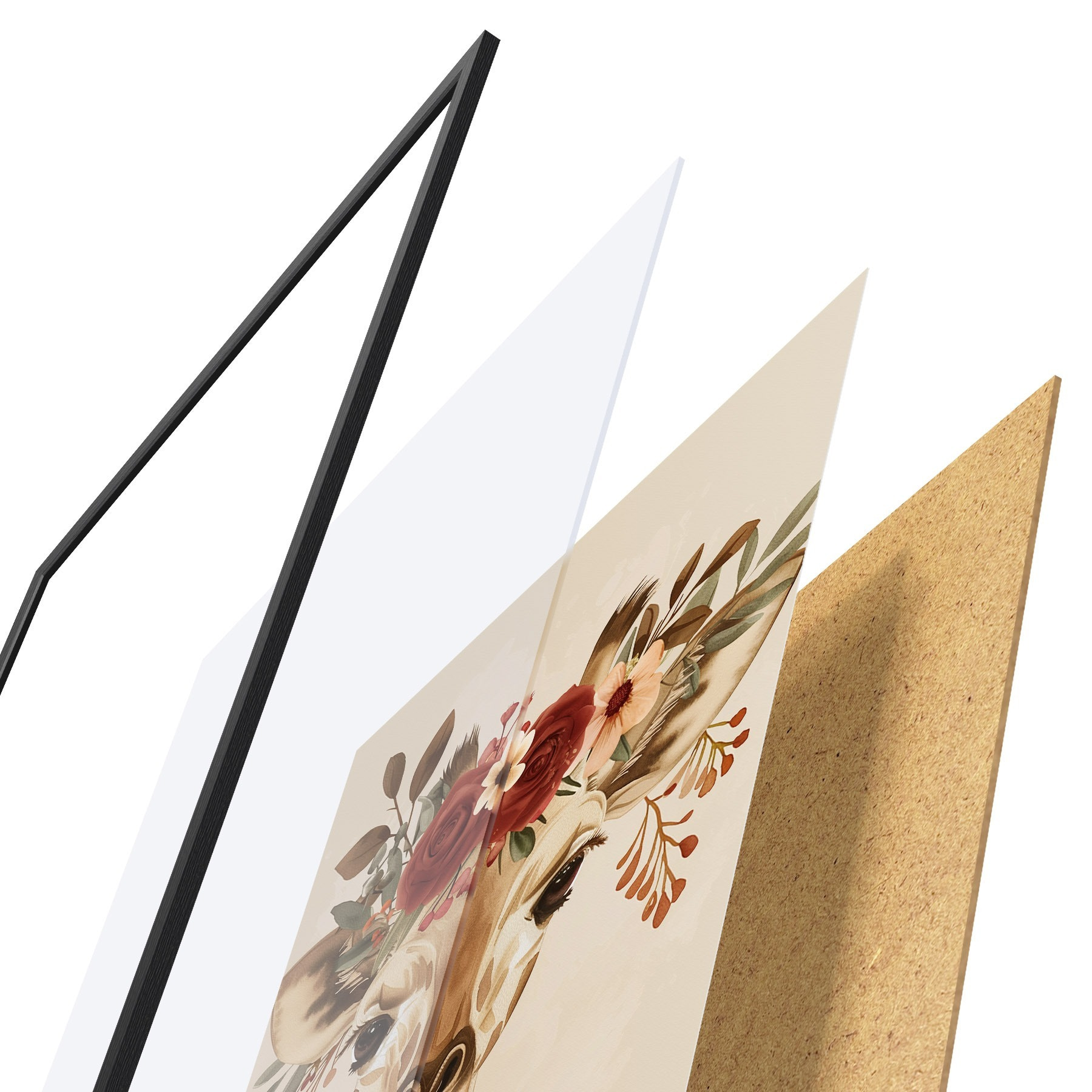 Plakāts sastāv no rāmja, pleksstikla, iespiestā attēla un skaidu plātnes pamatnes. Plakātu var uzreiz piekarināt pie sienas, pateicoties aizmugurē esošajiem stiprinājumiem.