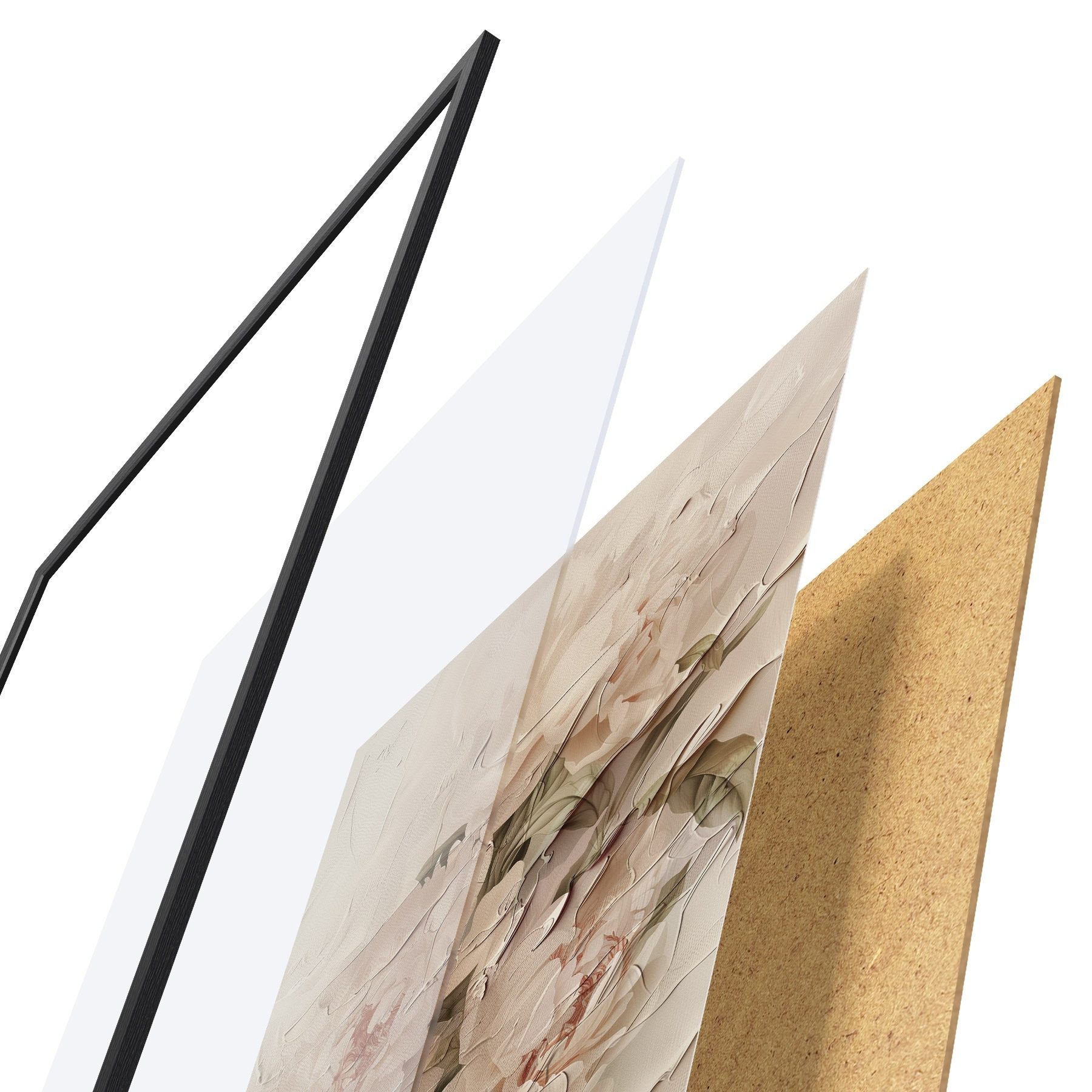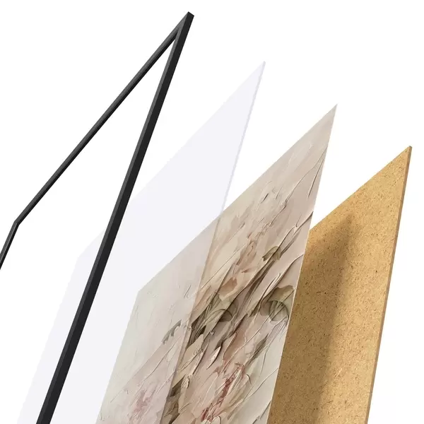 Plakāts sastāv no rāmja, pleksstikla, iespiestā attēla un skaidu plātnes pamatnes. Plakātu var uzreiz piekarināt pie sienas, pateicoties aizmugurē esošajiem stiprinājumiem.