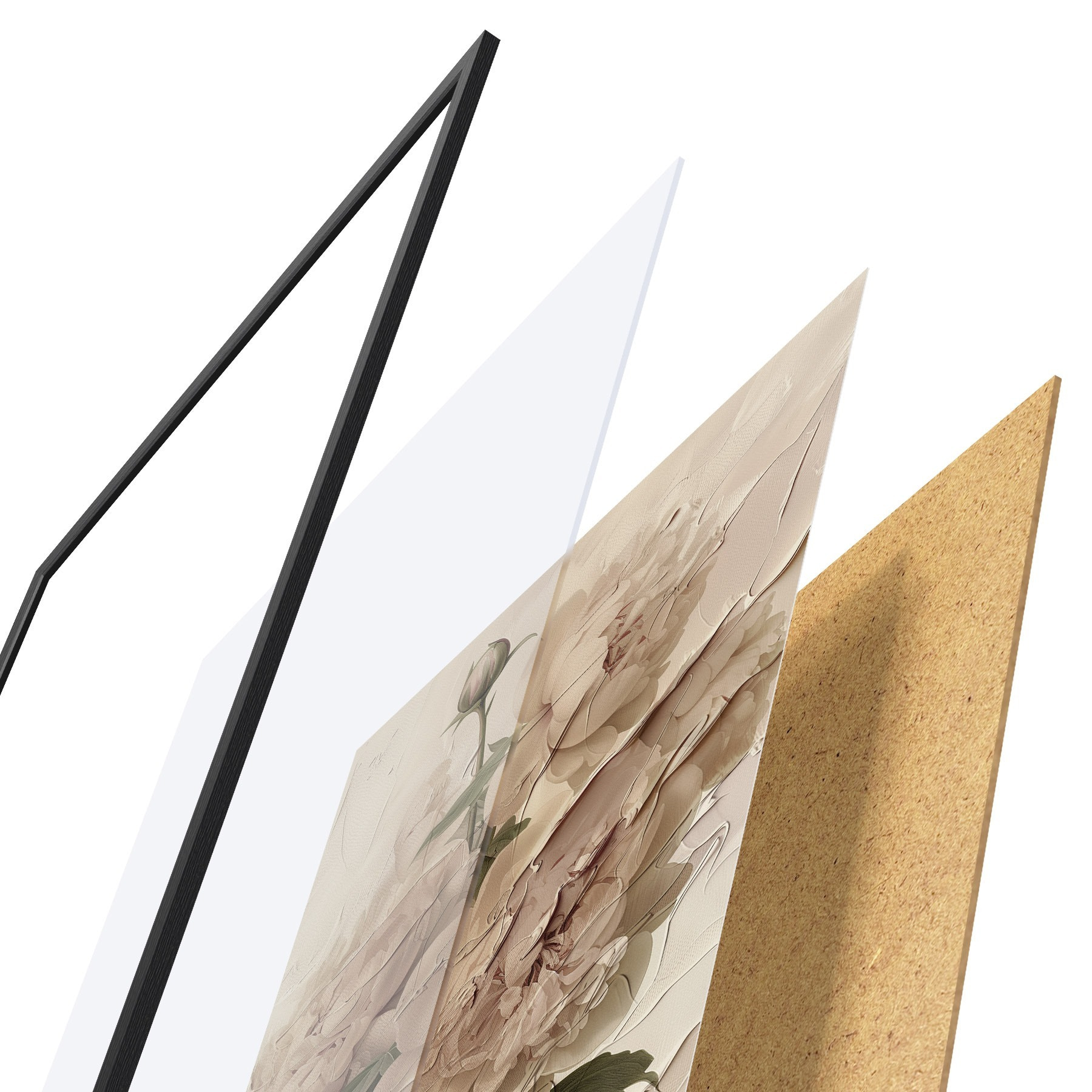 Plakāts sastāv no rāmja, pleksstikla, iespiestā attēla un skaidu plātnes pamatnes. Plakātu var uzreiz piekarināt pie sienas, pateicoties aizmugurē esošajiem stiprinājumiem.