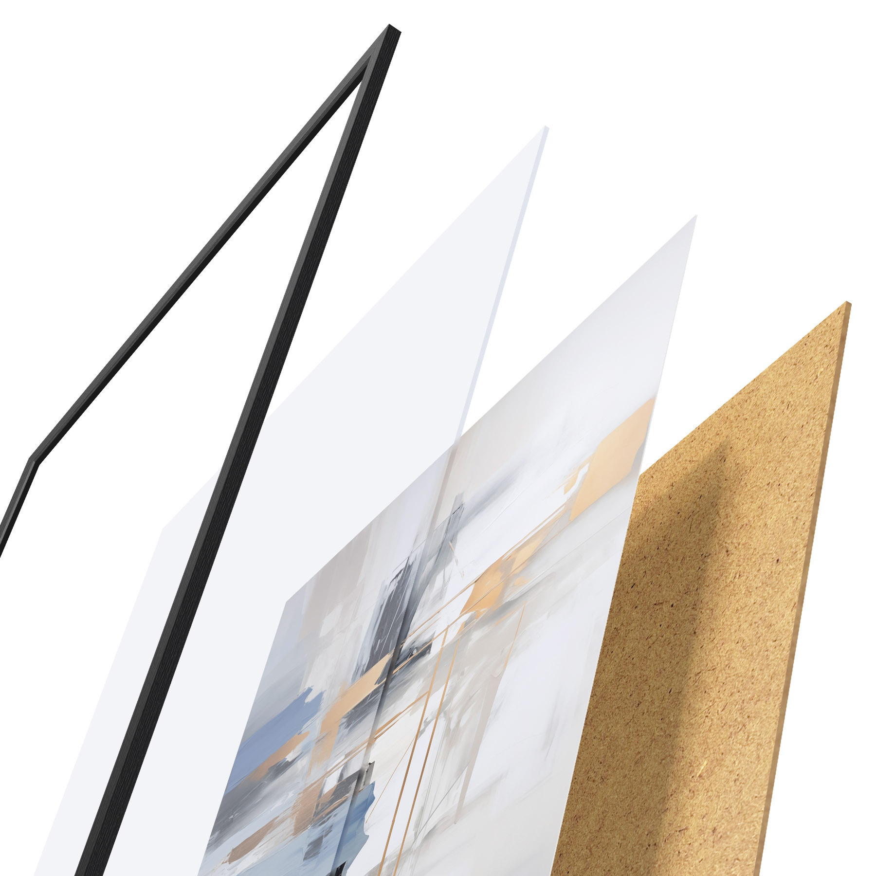Plakāts sastāv no rāmja, pleksstikla, iespiestā attēla un skaidu plātnes pamatnes. Plakātu var uzreiz piekarināt pie sienas, pateicoties aizmugurē esošajiem stiprinājumiem.