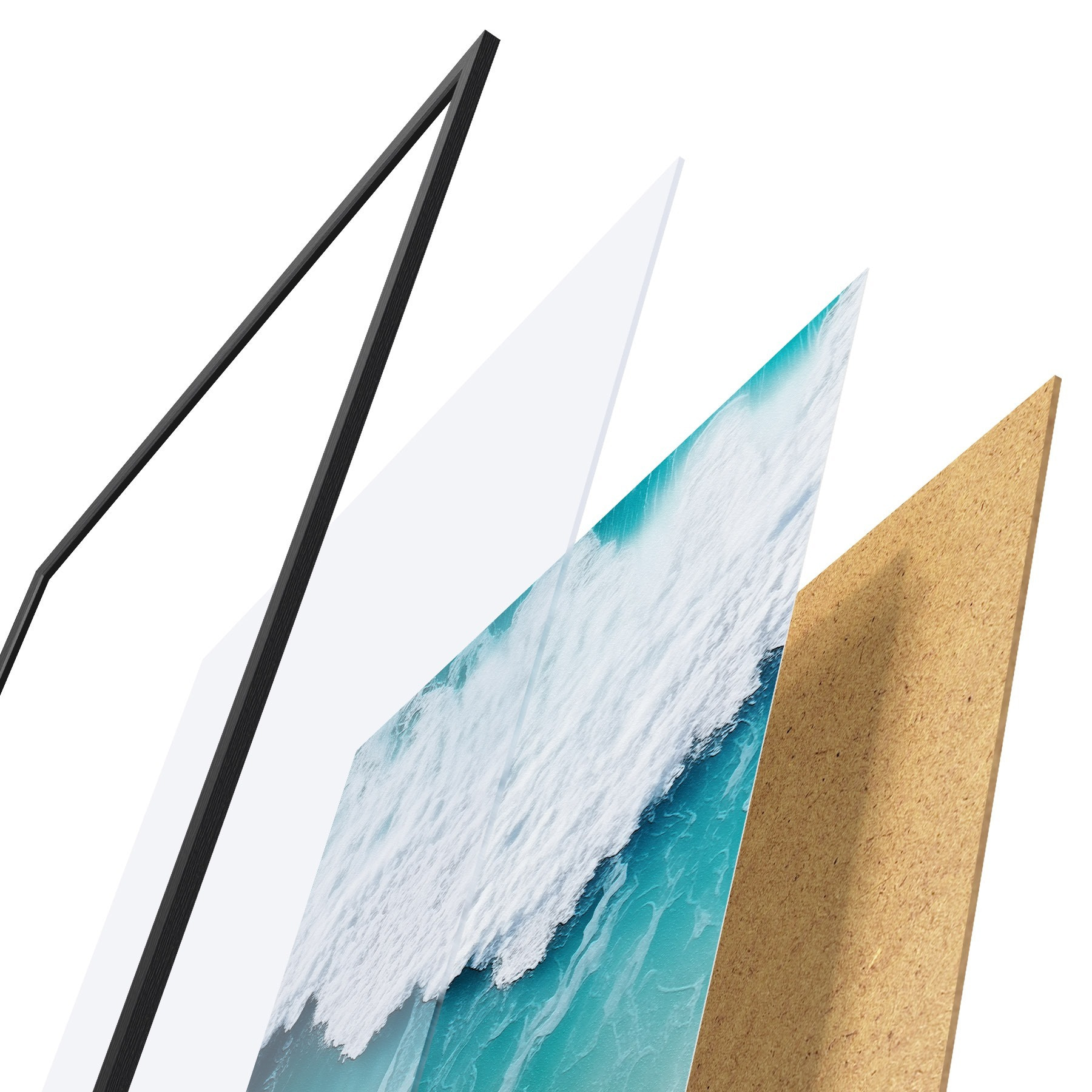 Plakāts sastāv no rāmja, pleksstikla, iespiestā attēla un skaidu plātnes pamatnes. Plakātu var uzreiz piekarināt pie sienas, pateicoties aizmugurē esošajiem stiprinājumiem.