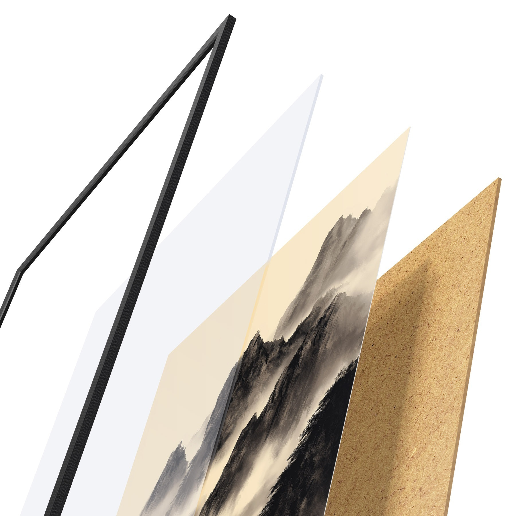 Plakāts sastāv no rāmja, pleksstikla, iespiestā attēla un skaidu plātnes pamatnes. Plakātu var uzreiz piekarināt pie sienas, pateicoties aizmugurē esošajiem stiprinājumiem.