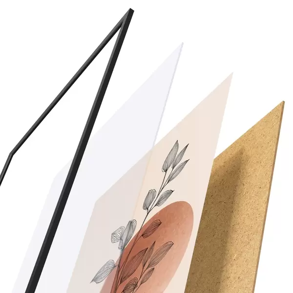 Plakāts sastāv no rāmja, pleksstikla, iespiestā attēla un skaidu plātnes pamatnes. Plakātu var uzreiz piekarināt pie sienas, pateicoties aizmugurē esošajiem stiprinājumiem.