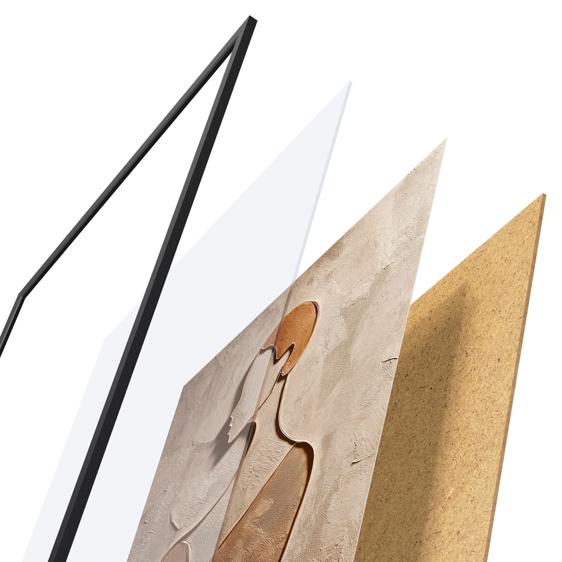 Plakāts sastāv no rāmja, pleksstikla, iespiestā attēla un skaidu plātnes pamatnes. Plakātu var uzreiz piekarināt pie sienas, pateicoties aizmugurē esošajiem stiprinājumiem.