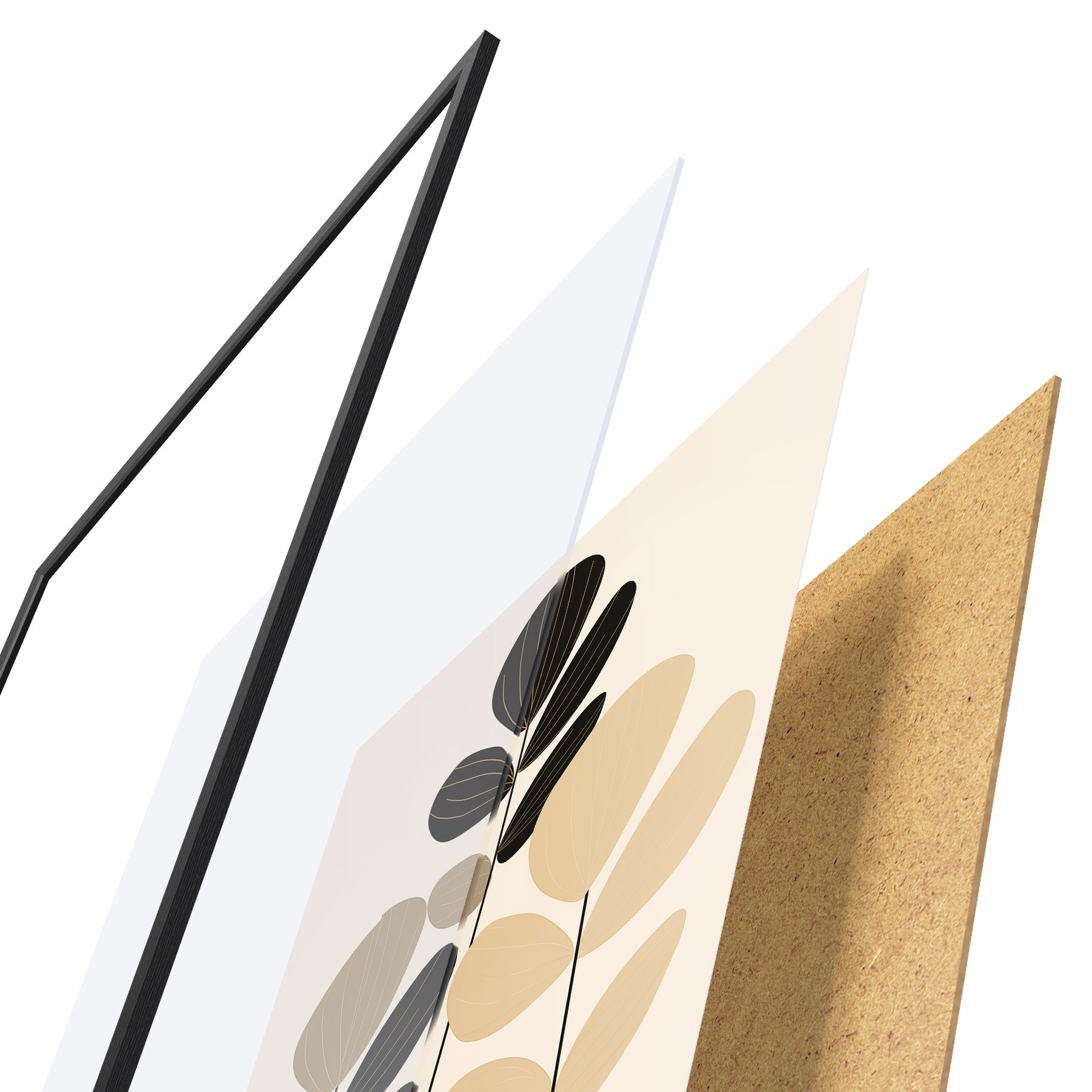 Plakāts sastāv no rāmja, pleksstikla, iespiestā attēla un skaidu plātnes pamatnes. Plakātu var uzreiz piekarināt pie sienas, pateicoties aizmugurē esošajiem stiprinājumiem.