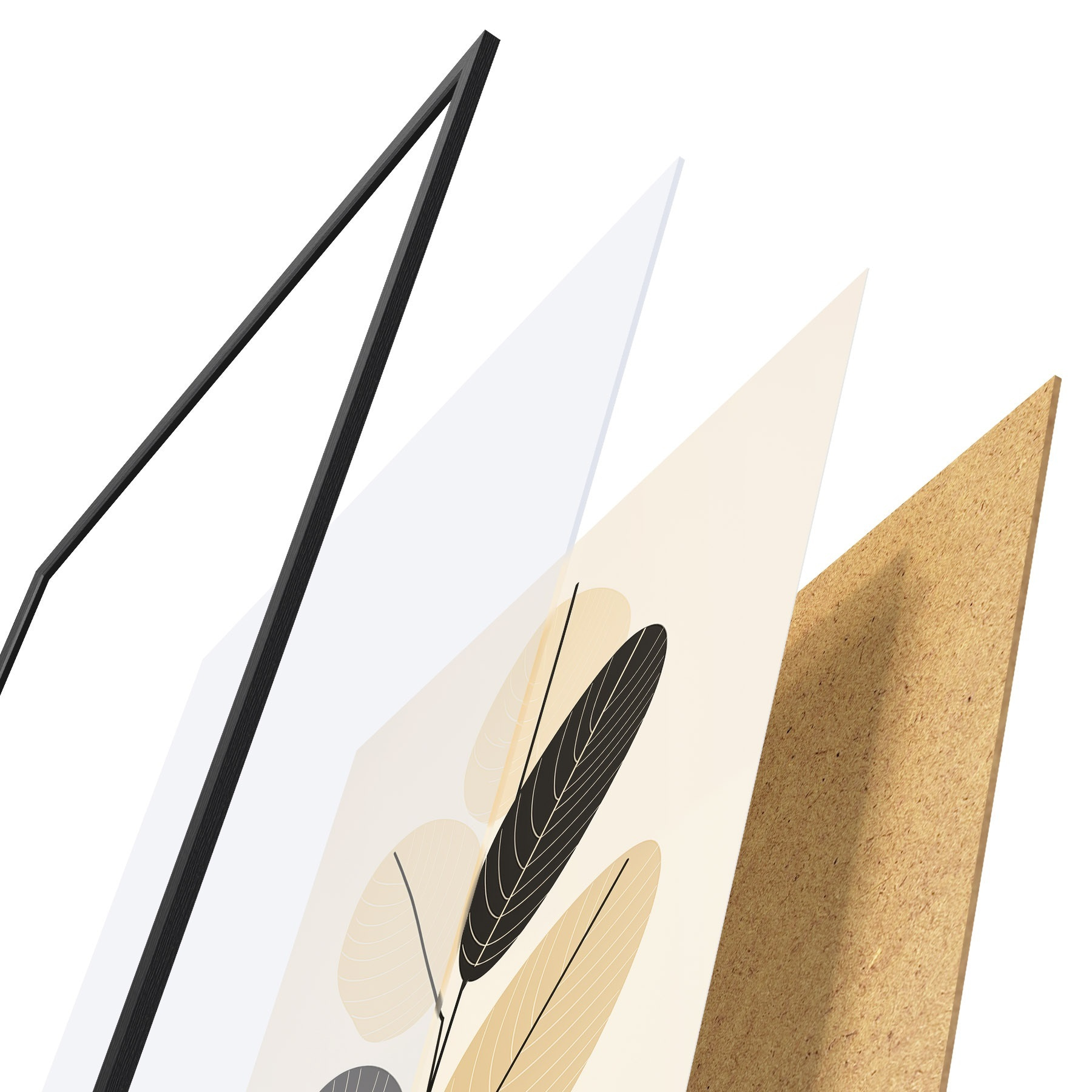 Plakāts sastāv no rāmja, pleksstikla, iespiestā attēla un skaidu plātnes pamatnes. Plakātu var uzreiz piekarināt pie sienas, pateicoties aizmugurē esošajiem stiprinājumiem.