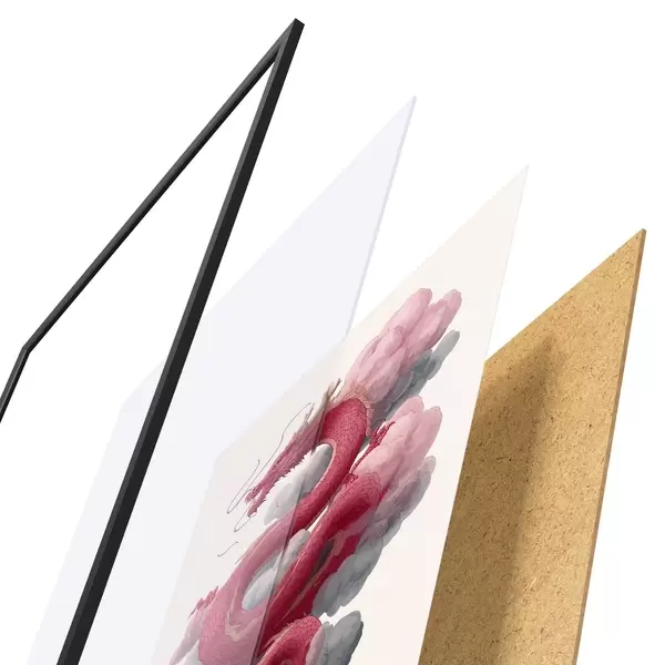 Plakāts sastāv no rāmja, pleksstikla, iespiestā attēla un skaidu plātnes pamatnes. Plakātu var uzreiz piekarināt pie sienas, pateicoties aizmugurē esošajiem stiprinājumiem.