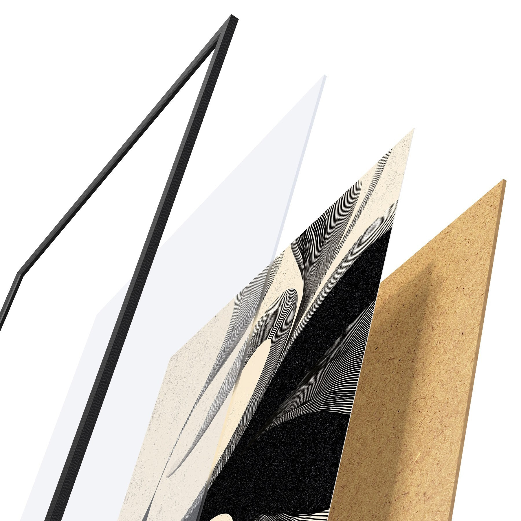Plakāts sastāv no rāmja, pleksstikla, iespiestā attēla un skaidu plātnes pamatnes. Plakātu var uzreiz piekarināt pie sienas, pateicoties aizmugurē esošajiem stiprinājumiem.