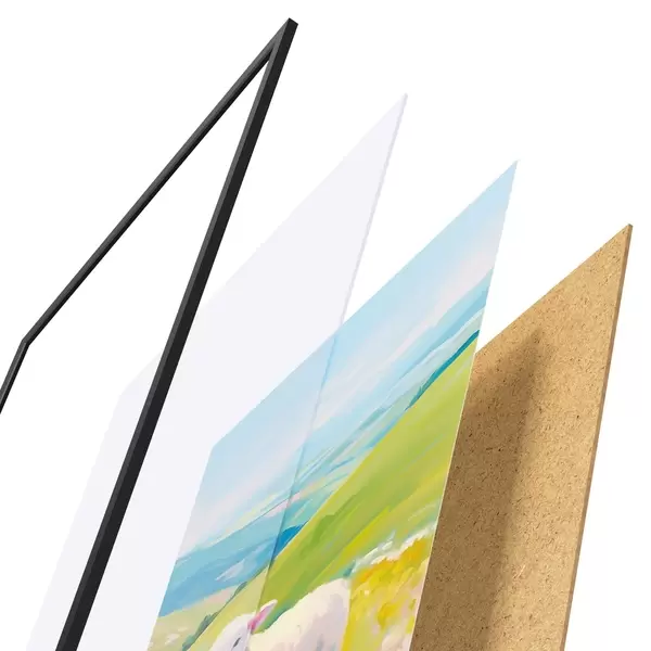 Plakāts sastāv no rāmja, pleksstikla, iespiestā attēla un skaidu plātnes pamatnes. Plakātu var uzreiz piekarināt pie sienas, pateicoties aizmugurē esošajiem stiprinājumiem.