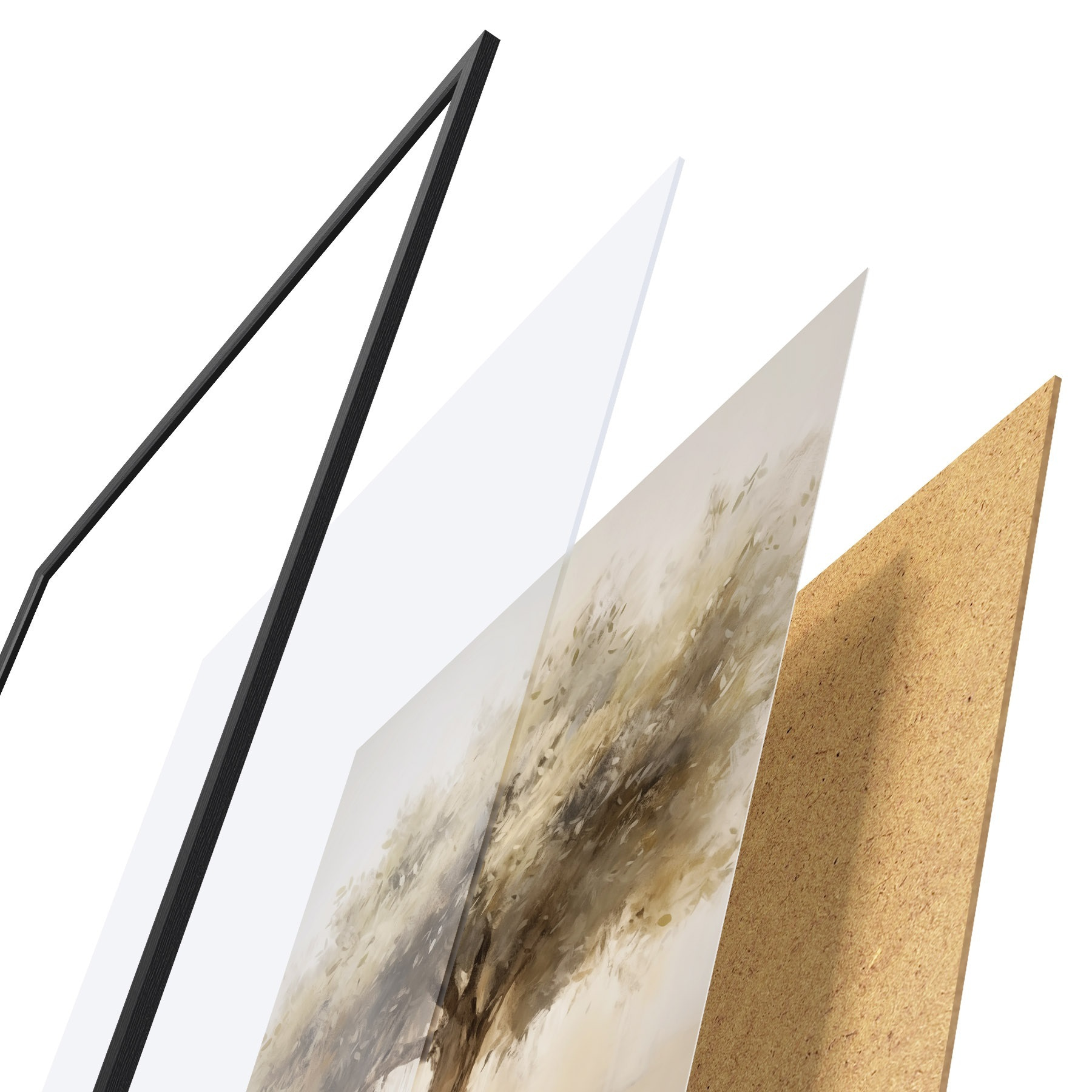 Plakāts sastāv no rāmja, pleksstikla, iespiestā attēla un skaidu plātnes pamatnes. Plakātu var uzreiz piekarināt pie sienas, pateicoties aizmugurē esošajiem stiprinājumiem.