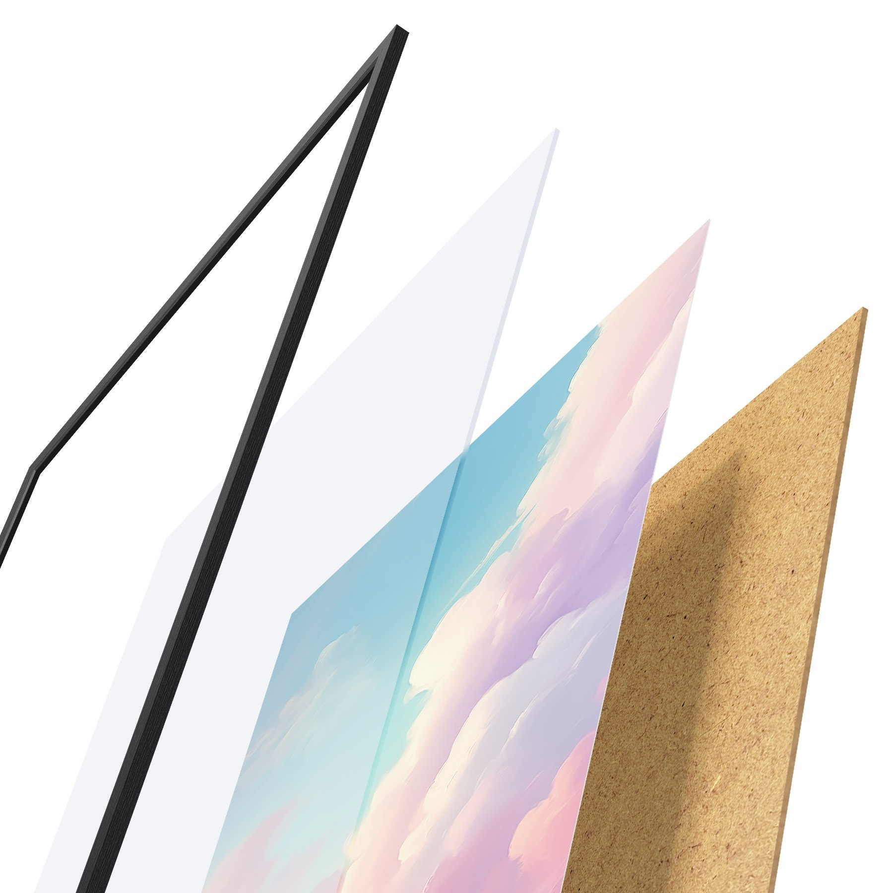 Plakāts sastāv no rāmja, pleksstikla, iespiestā attēla un skaidu plātnes pamatnes. Plakātu var uzreiz piekarināt pie sienas, pateicoties aizmugurē esošajiem stiprinājumiem.