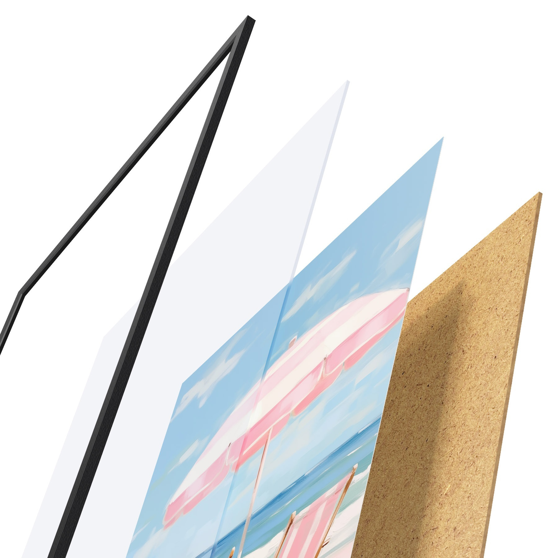 Plakāts sastāv no rāmja, pleksstikla, iespiestā attēla un skaidu plātnes pamatnes. Plakātu var uzreiz piekarināt pie sienas, pateicoties aizmugurē esošajiem stiprinājumiem.