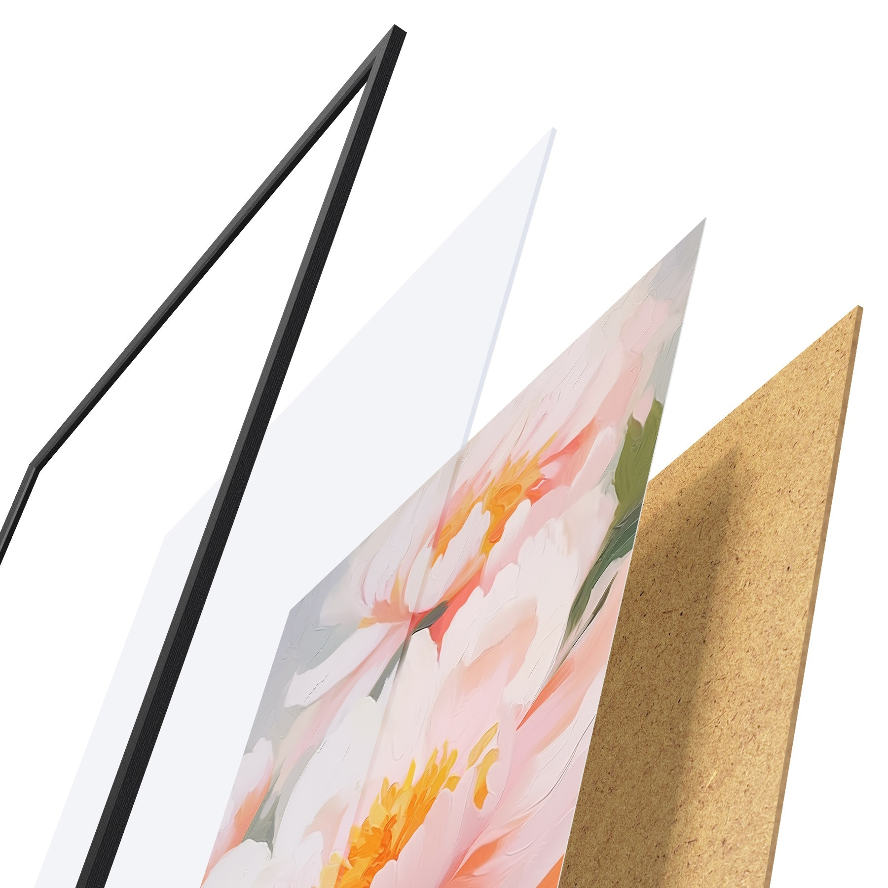Plakāts sastāv no rāmja, pleksstikla, iespiestā attēla un skaidu plātnes pamatnes. Plakātu var uzreiz piekarināt pie sienas, pateicoties aizmugurē esošajiem stiprinājumiem.