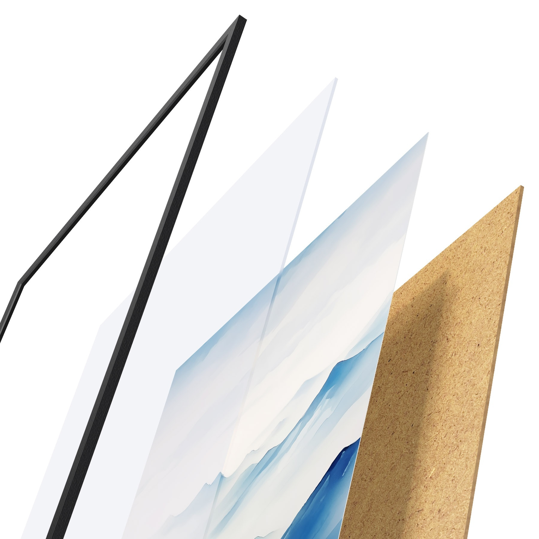 Plakāts sastāv no rāmja, pleksstikla, iespiestā attēla un skaidu plātnes pamatnes. Plakātu var uzreiz piekarināt pie sienas, pateicoties aizmugurē esošajiem stiprinājumiem.