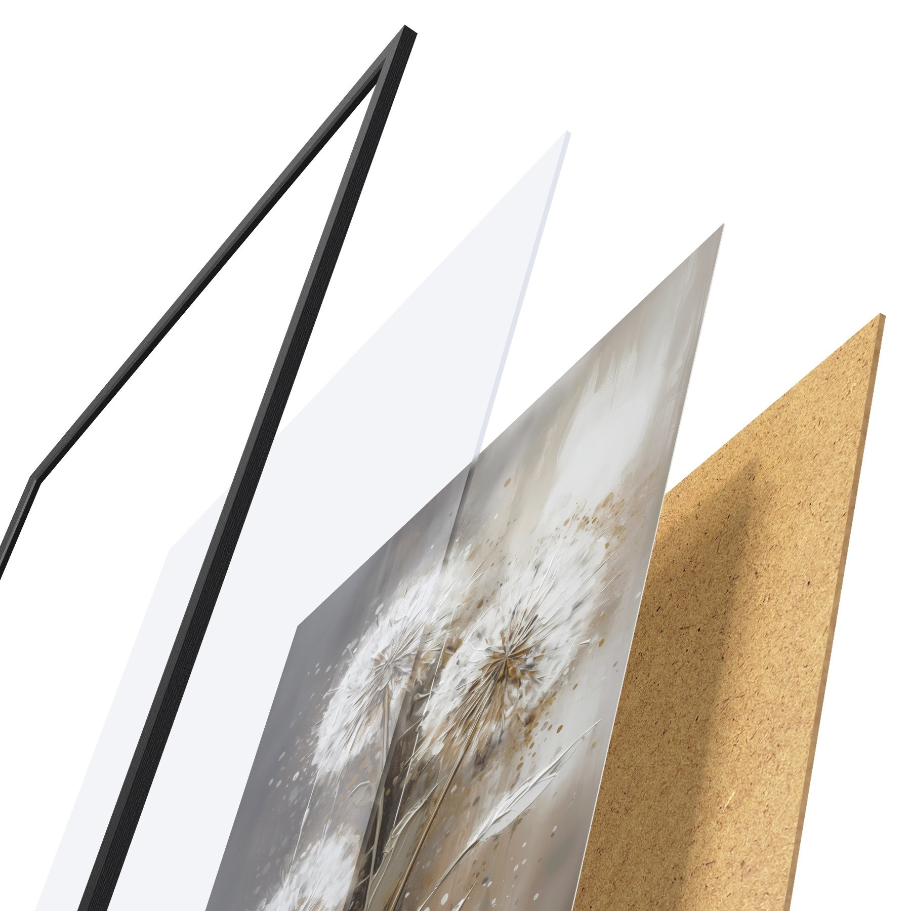 Plakāts sastāv no rāmja, pleksstikla, iespiestā attēla un skaidu plātnes pamatnes. Plakātu var uzreiz piekarināt pie sienas, pateicoties aizmugurē esošajiem stiprinājumiem.