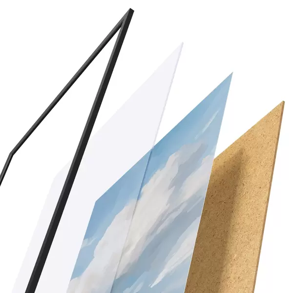 Plakāts sastāv no rāmja, pleksstikla, iespiestā attēla un skaidu plātnes pamatnes. Plakātu var uzreiz piekarināt pie sienas, pateicoties aizmugurē esošajiem stiprinājumiem.