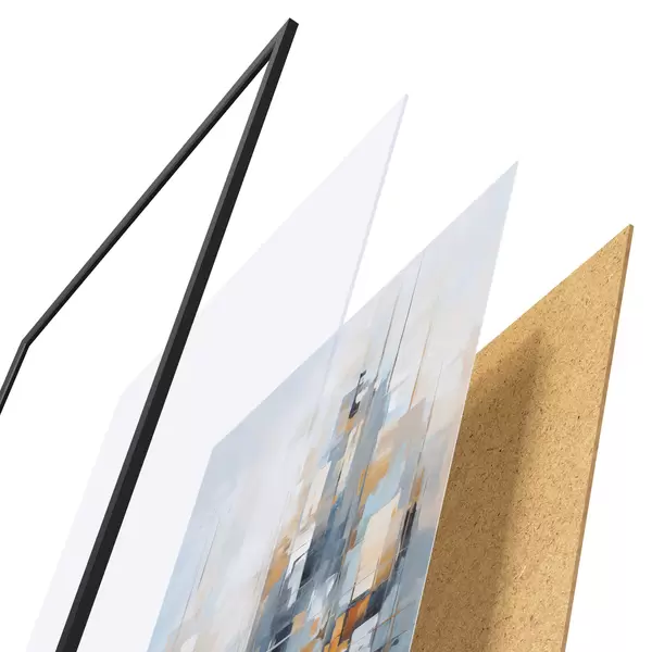 Plakāts sastāv no rāmja, pleksstikla, iespiestā attēla un skaidu plātnes pamatnes. Plakātu var uzreiz piekarināt pie sienas, pateicoties aizmugurē esošajiem stiprinājumiem.