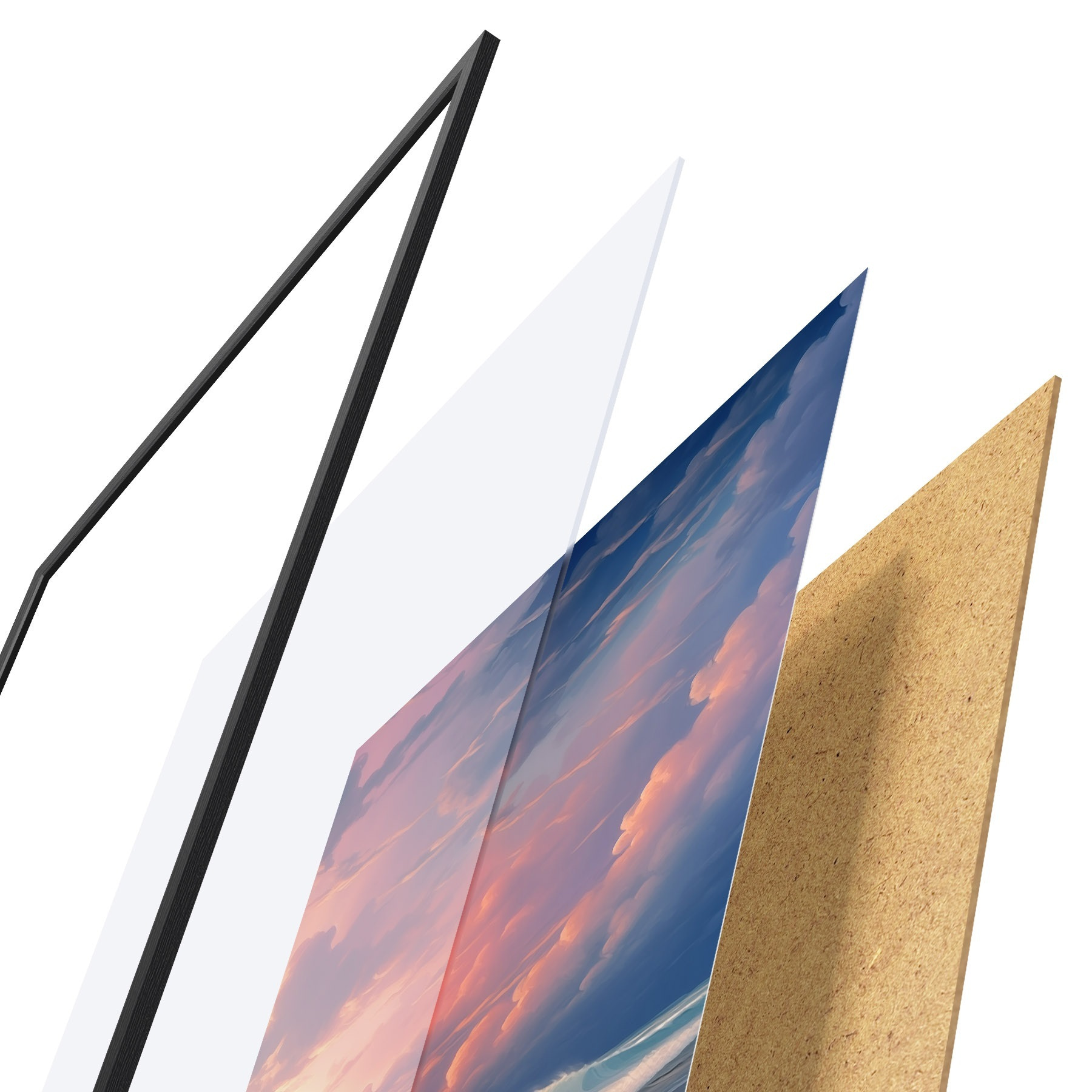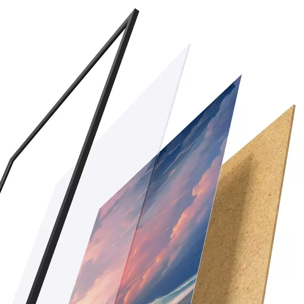 Plakāts sastāv no rāmja, pleksstikla, iespiestā attēla un skaidu plātnes pamatnes. Plakātu var uzreiz piekarināt pie sienas, pateicoties aizmugurē esošajiem stiprinājumiem.