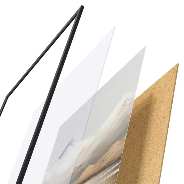 Plakāts sastāv no rāmja, pleksstikla, iespiestā attēla un skaidu plātnes pamatnes. Plakātu var uzreiz piekarināt pie sienas, pateicoties aizmugurē esošajiem stiprinājumiem.