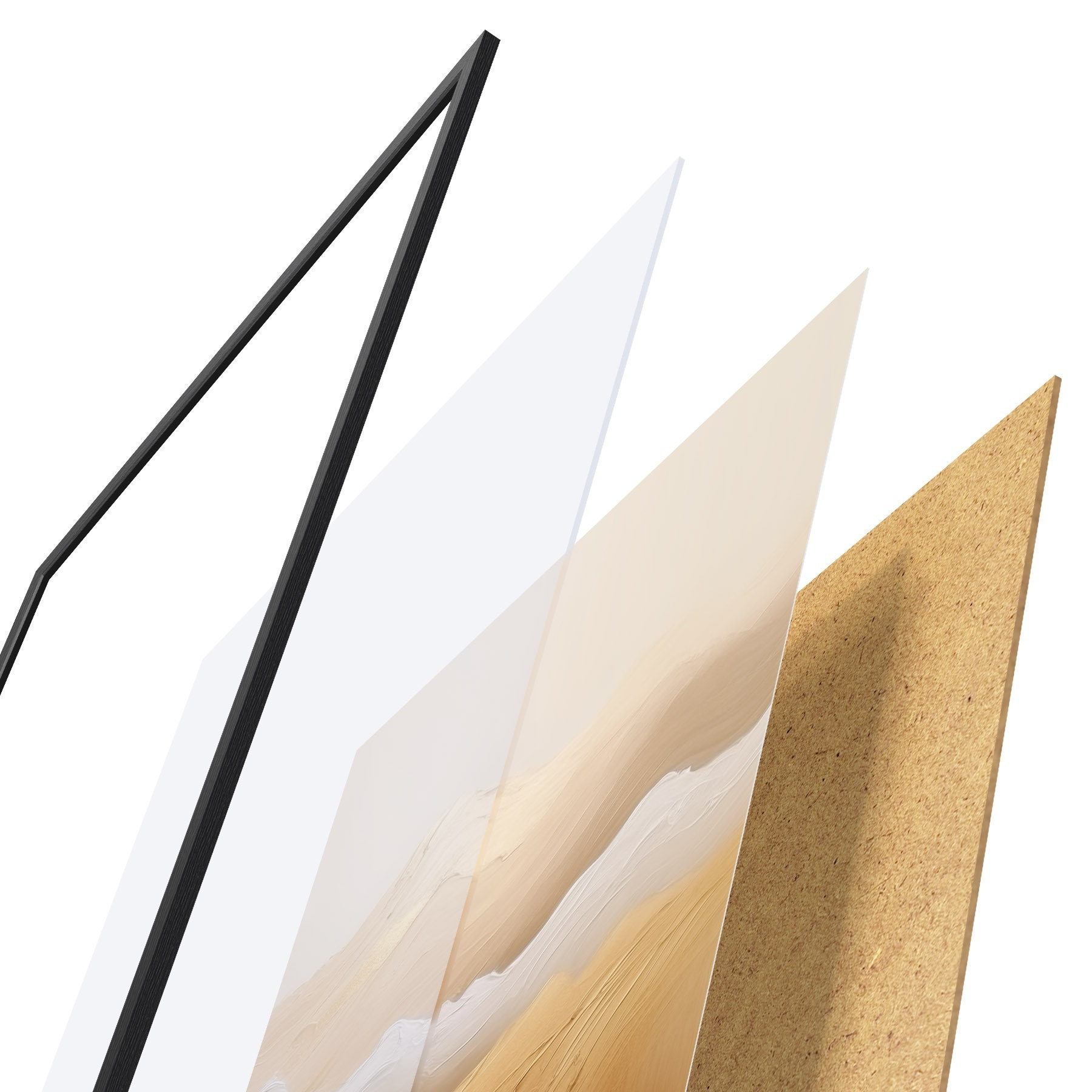 Plakāts sastāv no rāmja, pleksstikla, iespiestā attēla un skaidu plātnes pamatnes. Plakātu var uzreiz piekarināt pie sienas, pateicoties aizmugurē esošajiem stiprinājumiem.