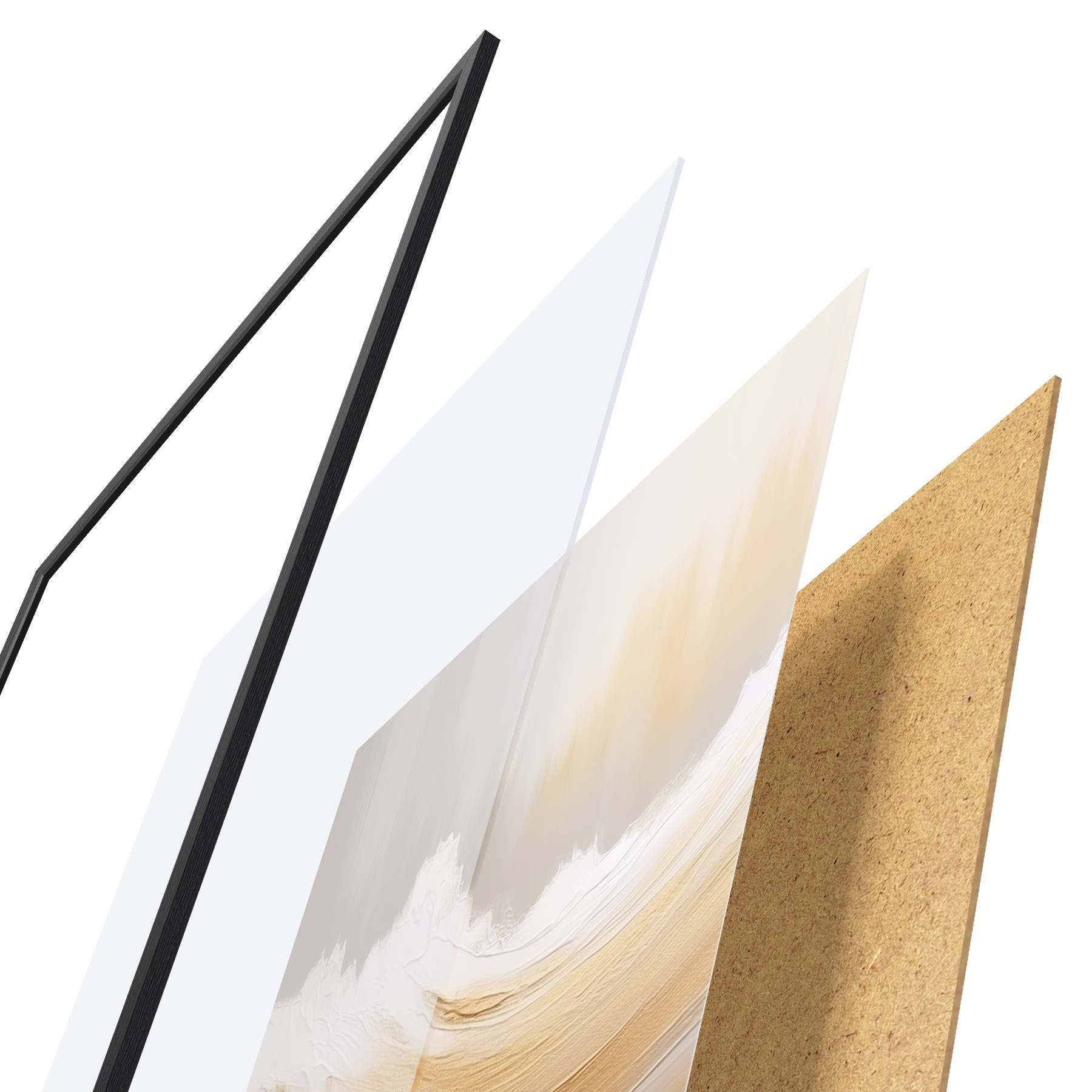 Plakāts sastāv no rāmja, pleksstikla, iespiestā attēla un skaidu plātnes pamatnes. Plakātu var uzreiz piekarināt pie sienas, pateicoties aizmugurē esošajiem stiprinājumiem.