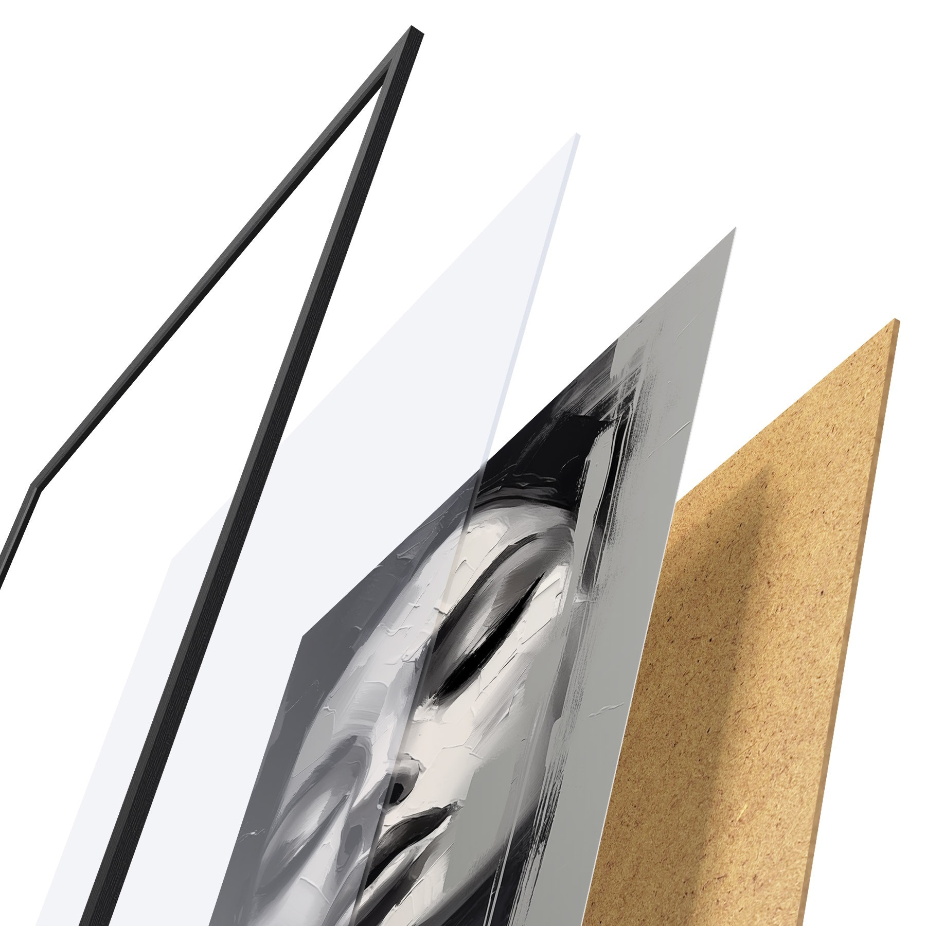 Plakāts sastāv no rāmja, pleksstikla, iespiestā attēla un skaidu plātnes pamatnes. Plakātu var uzreiz piekarināt pie sienas, pateicoties aizmugurē esošajiem stiprinājumiem.