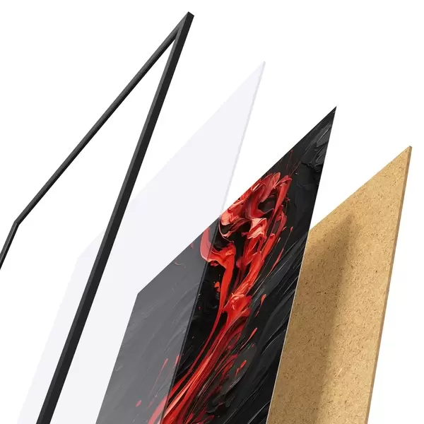 Plakāts sastāv no rāmja, pleksstikla, iespiestā attēla un skaidu plātnes pamatnes. Plakātu var uzreiz piekarināt pie sienas, pateicoties aizmugurē esošajiem stiprinājumiem.