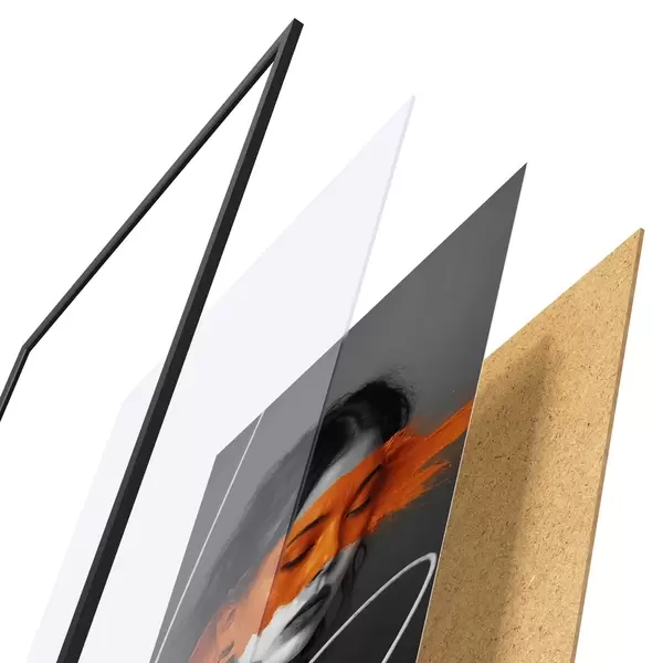 Plakāts sastāv no rāmja, pleksstikla, iespiestā attēla un skaidu plātnes pamatnes. Plakātu var uzreiz piekarināt pie sienas, pateicoties aizmugurē esošajiem stiprinājumiem.